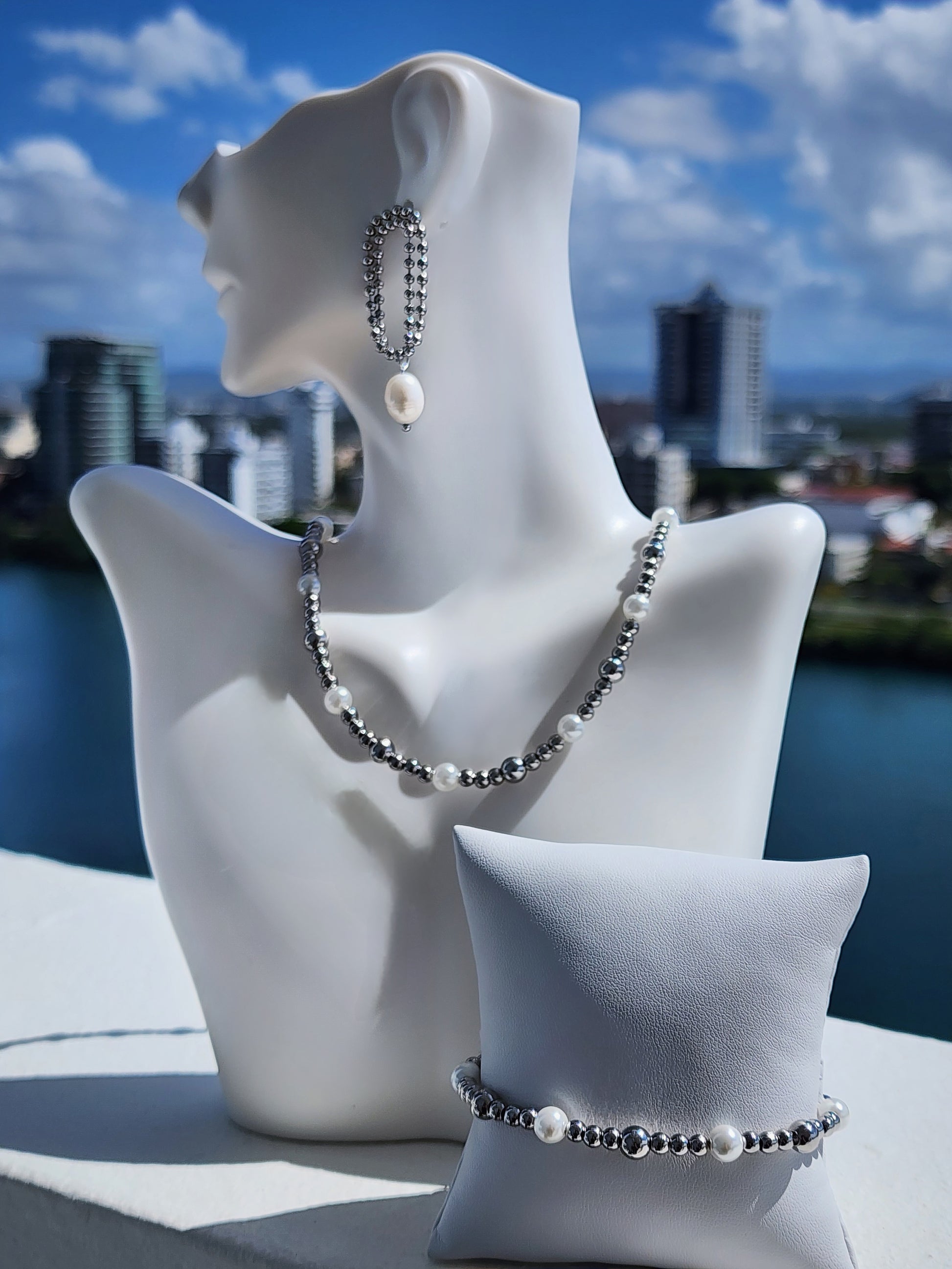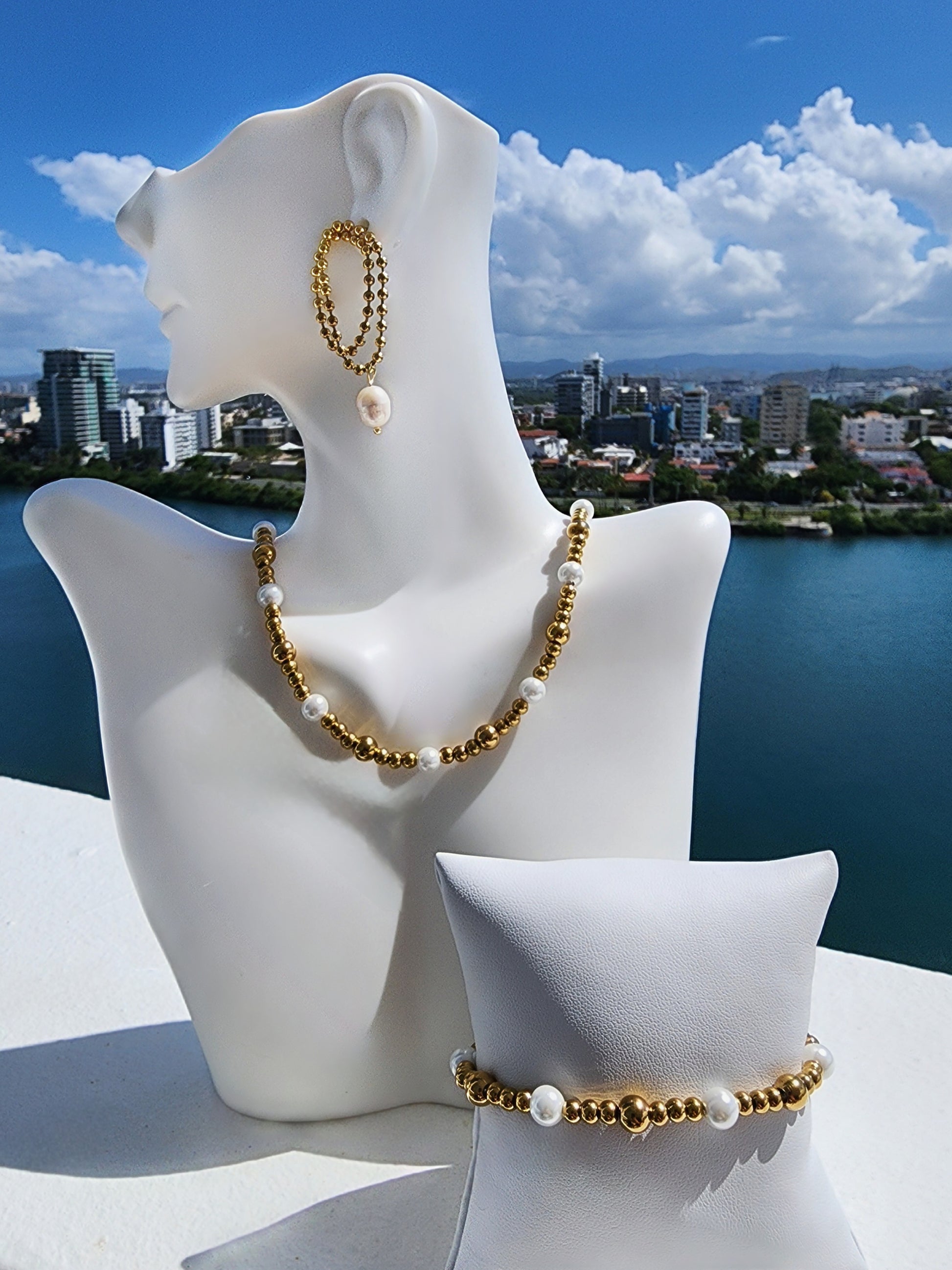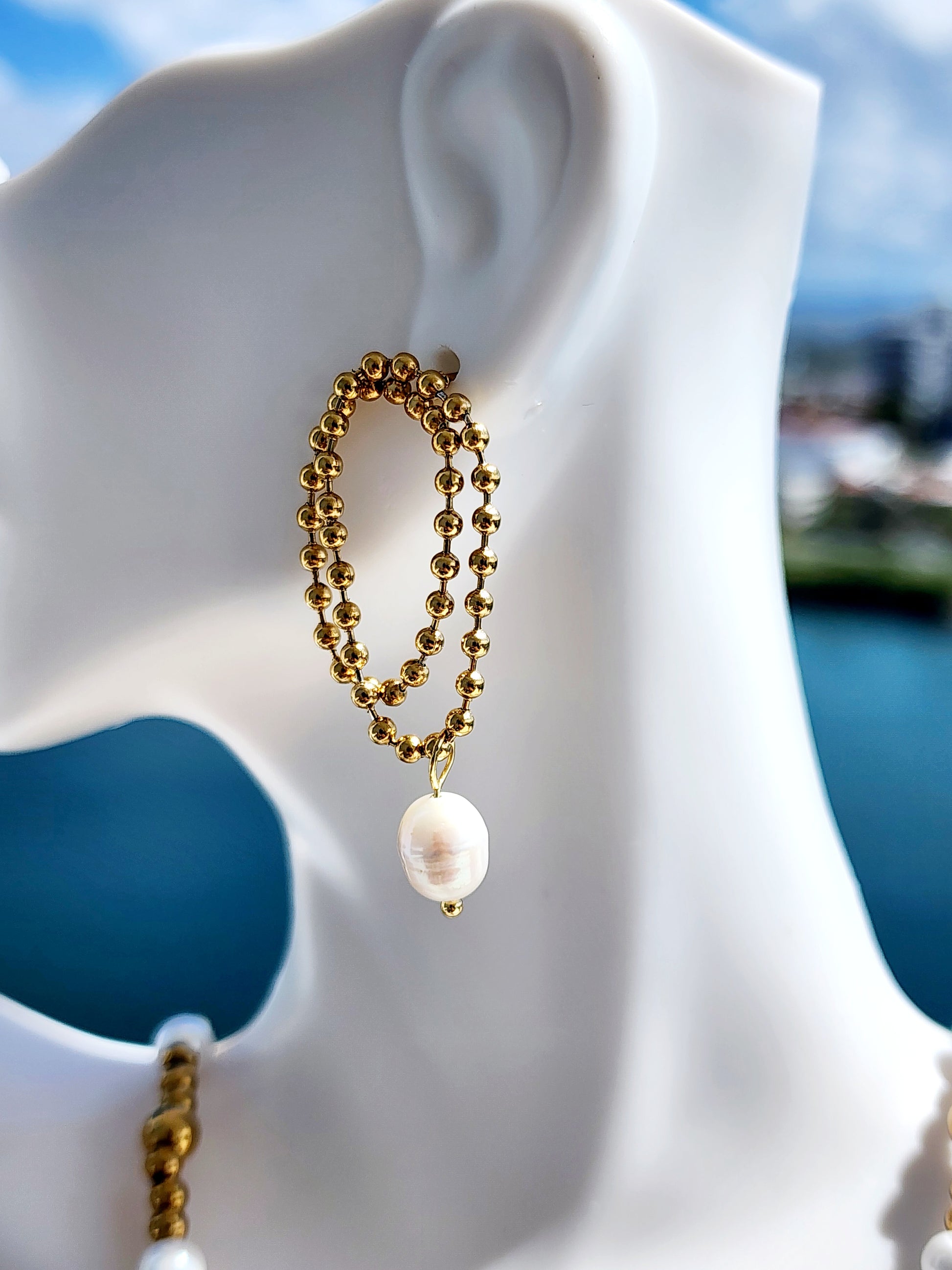 Hermoso par de pantallas con doble hilera beads y perlas.